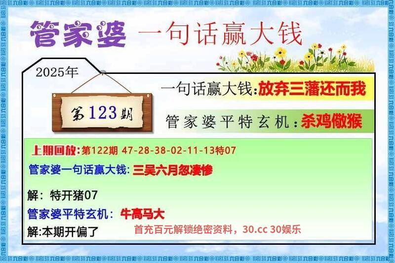 123期:单双中特♀【单数】♀开:羊23中